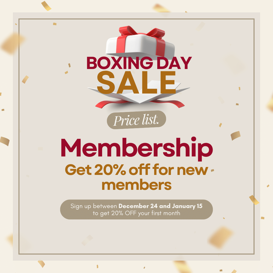 Get 20% off on your first month with any membership when you sign up between December 24-January 15.